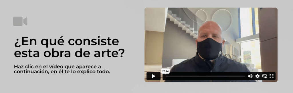 Una vez has hecho la compra y firmado el contrato, te envían una obra de arte por email en formato JPG que representará tu importe. No es un NFT, ya que tienen un funcionamiento algo complicado de entender, así que para simplificar el proceso lo haremos de ese modo.